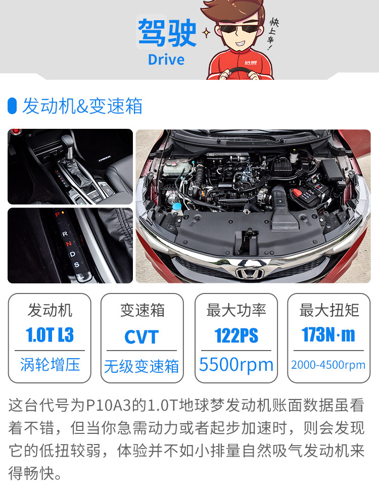但在日常D挡状态下,两千转之前较难把开车开动,需要把油门(开关)踩下去后,耐心等待转速上来后,才有足够的爆发力往前冲,这点还比不上小排量发动机的输出特性。