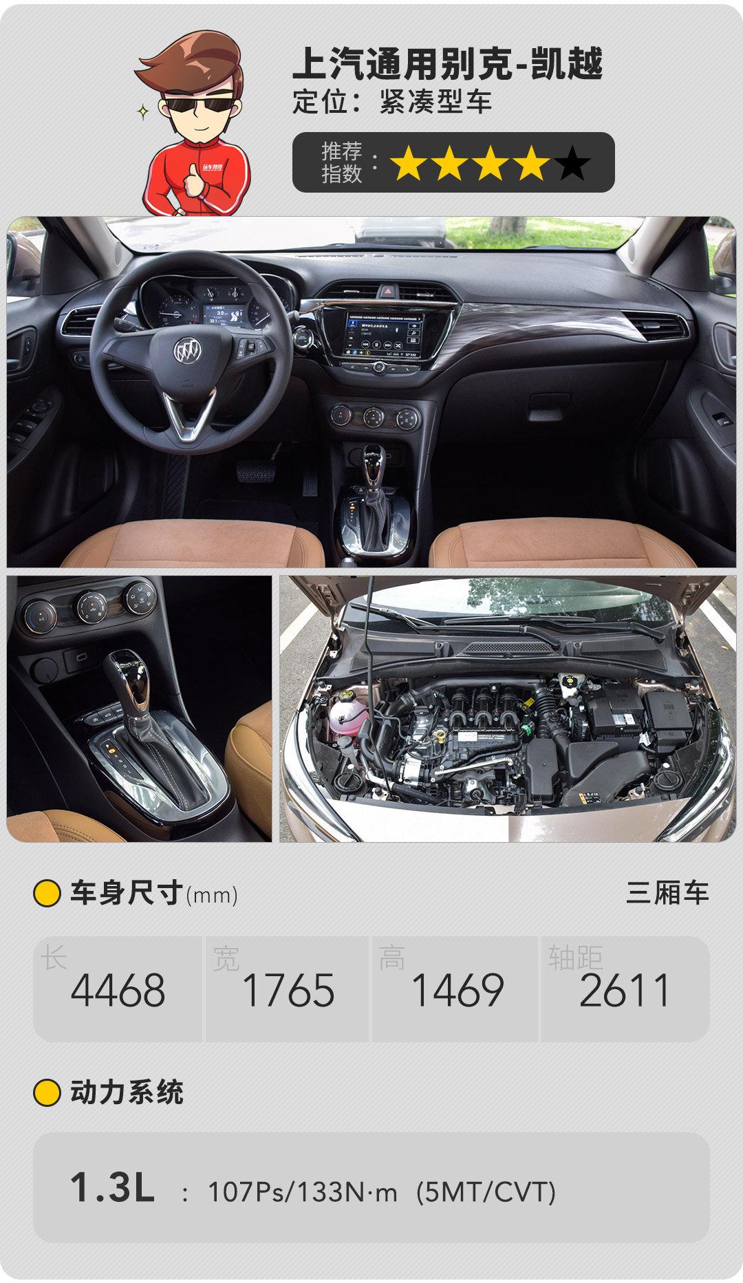 如果问新款凯越车系里哪款最值得推荐,教授认为是入门手动车型与顶配车型。因为手动挡车型即便是入门车型,也同样拥有6气囊、ESP、后驻车雷达、上坡辅助以及电动天窗等一系列实用配置,加上价格的优势,入门车型对于能接受手动挡的消费者来说性价比极高。如果是需要自动挡的话,顶配车型更值得推荐,相比次顶配增加了无钥匙进入/启动、胎压监测、中控大屏、手机互联等实用豪华配置,价格仅相差6000元,因此具有更高性价比。