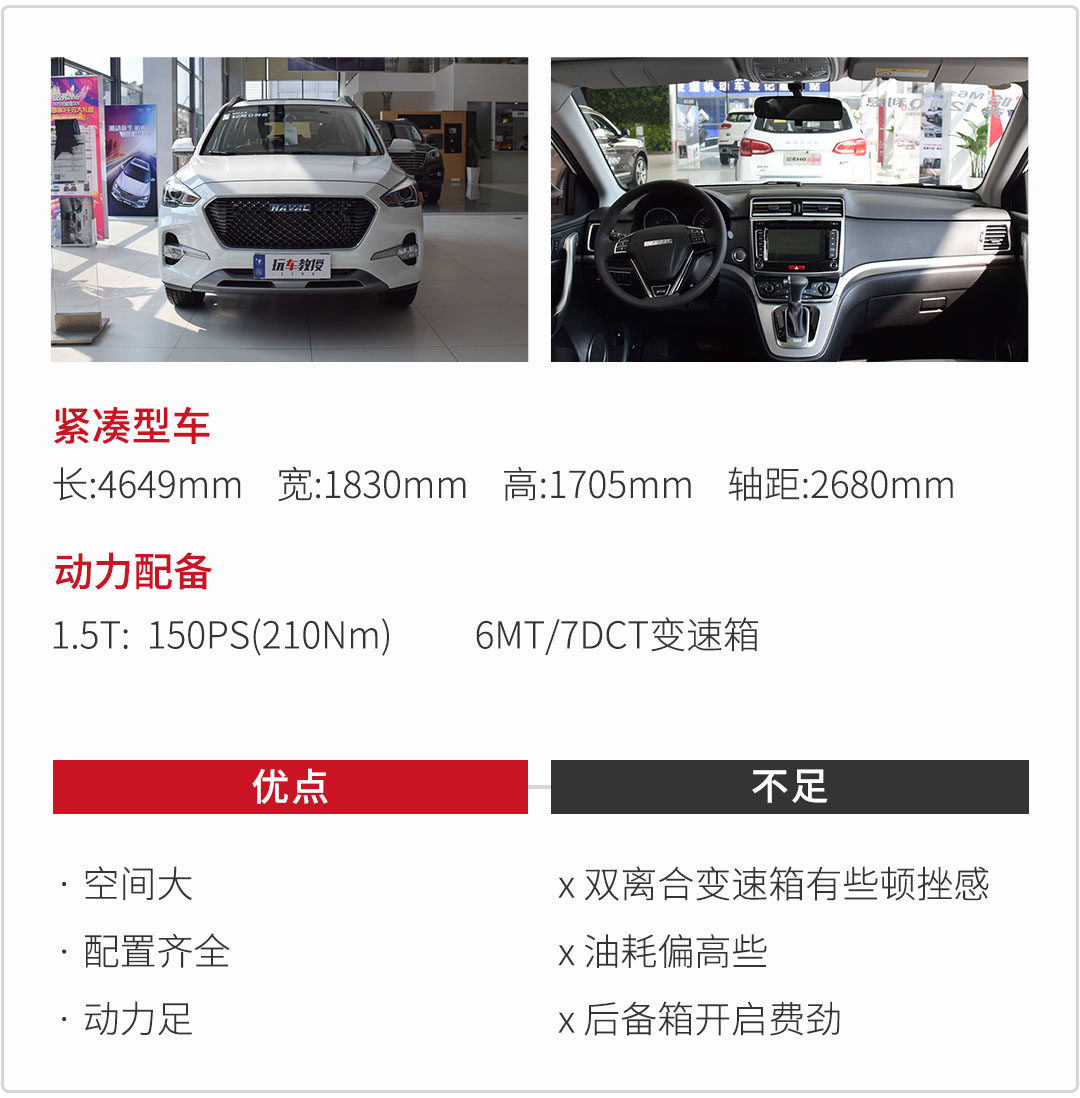 哈弗M6与H6有着很大的联系,可以说是”低配版”的H6,三大件基本是一致的。但M6的设定更像是一款MPV,包括空间性方面,尤其是后备箱的空间,较为宽敞,空间负载能力强。但对于年轻人来说,当大空间不是第一需求的时候,可能就不会那么讲究大空间。产品特性没有太大的问题,SUV空间视野性也比较不错些。往前进行官方降价之后,价格的优势进一步提升。从品牌来说,哈弗,在国内消费者还有着比较不错的认可度,尤其哈弗H6。唯一一点会让人觉得不怎么好的,就是双离合变速箱难免有些顿挫,但好在1.5T动力足。