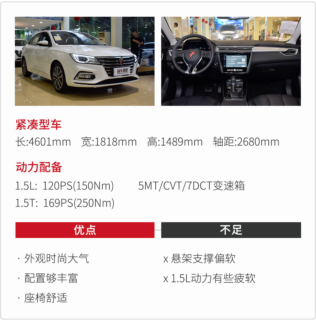 荣威i5,是近期所推出的一款车型,凭借着荣威RX5前面的几款车型的积淀,智能化很快被我们熟知,斑马系统,一些语音控制方便不少。如果是那款自动挡入门配置车型的话,配置就挺丰富了。国产车型的优势就是配置够高,而且现在的外观和内饰的进步很大,在众多配置下,后期用车的舒适及便利都很不错,并且该座椅的舒适性也比较明显。1.5L自然吸气发动机+CVT的身份设定,整体调校会偏向于舒适性,连悬架也会偏这个方向走。