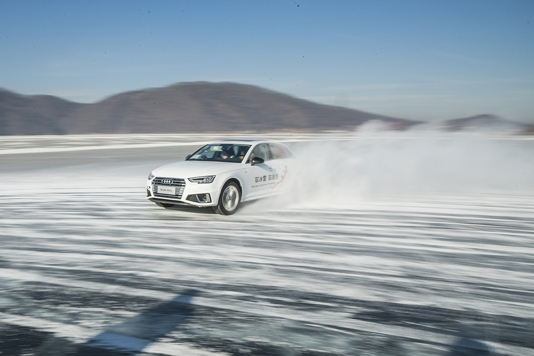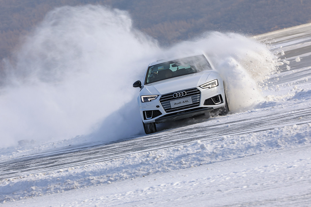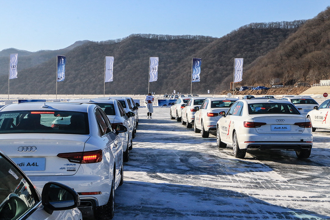 因此每一年的奥迪冰雪试驾,都是汽车媒体圈里最期待的盛典。此次的试驾地点与往年一样,选择了长春星星哨水库,寒冷的冬季里把这片一望无际的湖面冻结成了巨大的平面,成为了冰雪试驾的最佳体验场所。整片巨大的试驾场地由4个蛇形及椭圆项目场地,外加一条赛道组成,整个试驾的环节就是驾驶换装了钉胎的奥迪A4L 45 TF SI车型进行冰面飘移培训,最后通过小型赛事竞逐出时间最优的媒体车手,从而深入了解奥迪quattro的独特稳定特性。