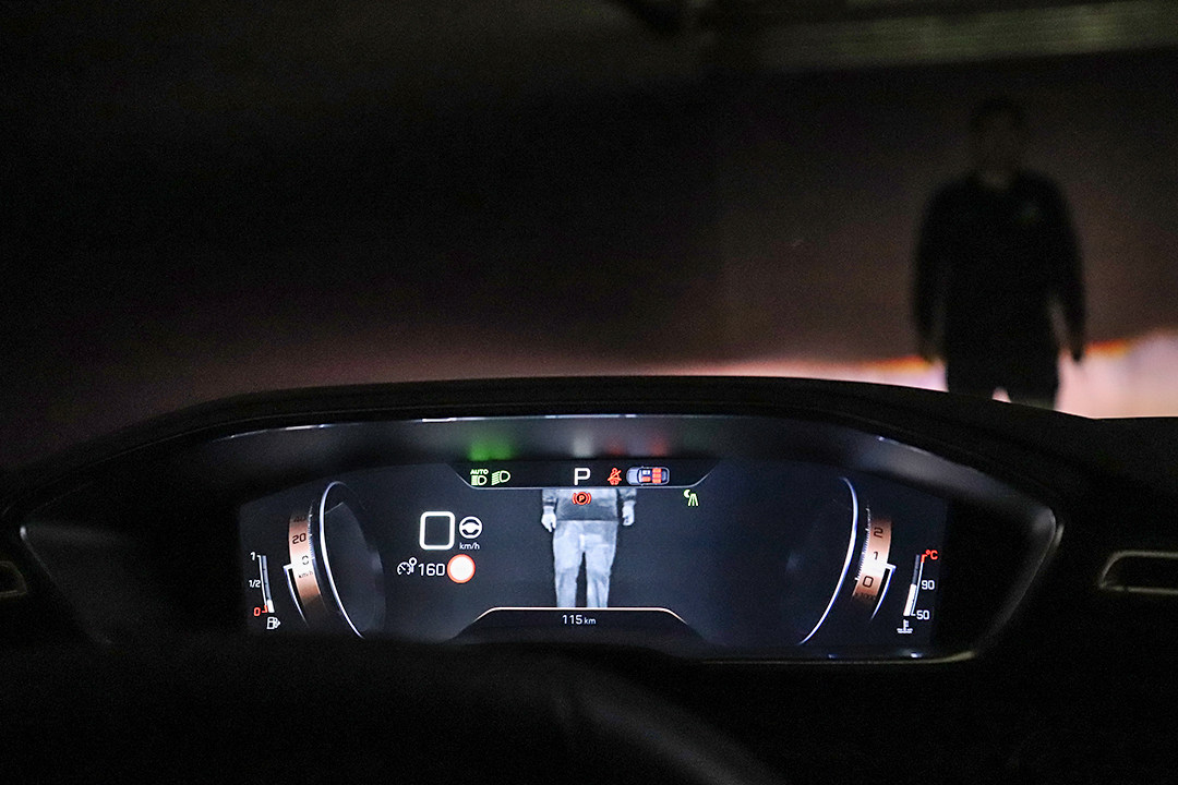 远不止此,新一代东风标致508L还配备了同级罕见的夜视功能,要知道以往这可是专属于四、五十万元往上级别车型的高新配置,在光线贫瘠的环境行车时,位于车辆前部的夜视摄像头会实时侦测到15-150m的移动物体,并将信息投影至全液晶仪表盘上并重点标记,以视觉和听觉形式反馈给驾驶者,夜间行车安全性大大提高。