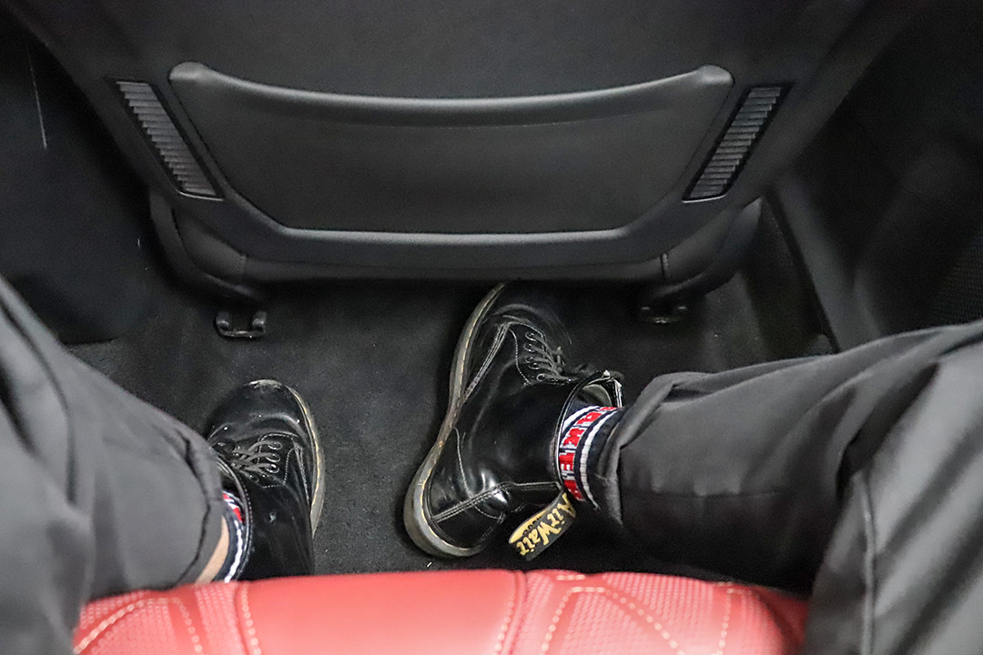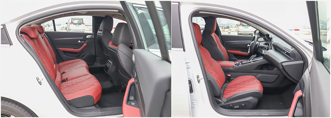 黑红拼接真皮座椅骚气逼人,同车试驾老师还表示质感不输玛莎拉蒂的骚红座椅,能在在包裹性和支撑度间找到韧性平衡,视觉、触觉俱佳,实属不易。独特的缝线纹路宛如奢侈的法国皮具,让人爱不释手。