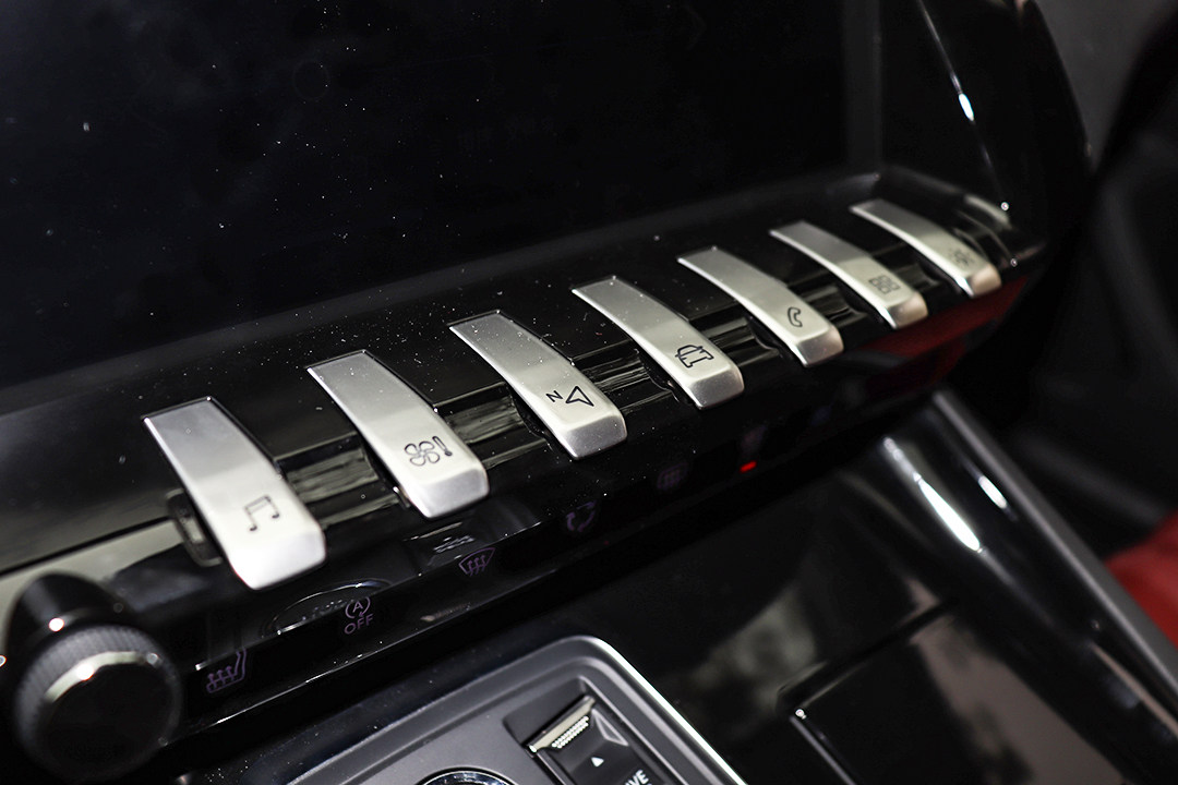 法国国宝音响劲浪Focal 10扬声器音响系统的出现,多少让508L有点受宠若惊,要知道这可是音响界中的奢侈品,地位丝毫不怵MERIDIAN英国之宝、Burmester柏林之声等大牌,高达515W的有源功放功率为舱内奏响环绕式沉浸音效,中控屏前方的银色按键宛如黑白相间的钢琴键,意欲伴奏。