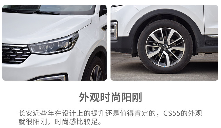 相比较同价位的车型,长安CS55的尺寸不算大,算是标准尺寸了,不过内部空间还是有所保障的,车子的造型设计也比较阳刚帅气,符合国人的审美,改款之后新样式的中网也更有设计感。