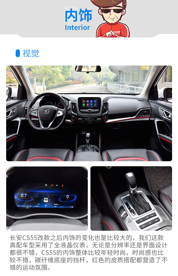 驾驶起来,CS55给人的感觉更多地是安逸,转向手感轻柔,指向性一般般,路感也不出色,电子味比较重;变速箱的换挡也不快,加上本身不算好的动力,整体驾驶起来跟运动没什么关系,适合比较安逸的驾驶风格。这也符合人们对这个价位SUV的预期。虽然说CS55的运动感不强,但是论好开,CS55还是做得很到位的,尤其是6AT变速箱的换挡逻辑和平顺性甩自主双离合车型几条街。