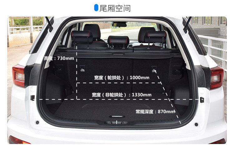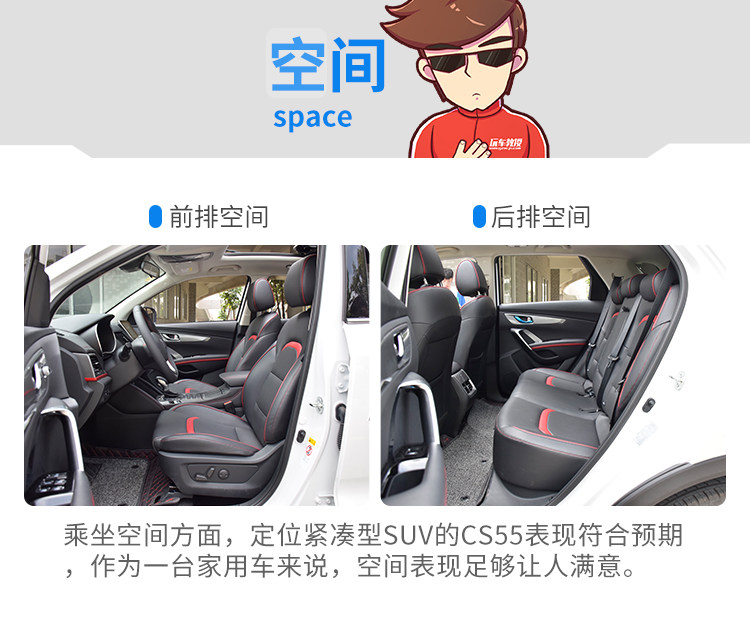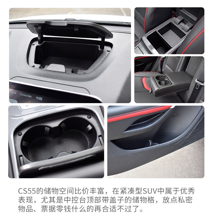 CS55的尾厢深度和高度都不算出色,在紧凑型SUV中属于偏小的水平,这也是它相比较哈弗H6有些劣势的地方,而且CS55的尾厢开口距离地板的高度也不算低了。