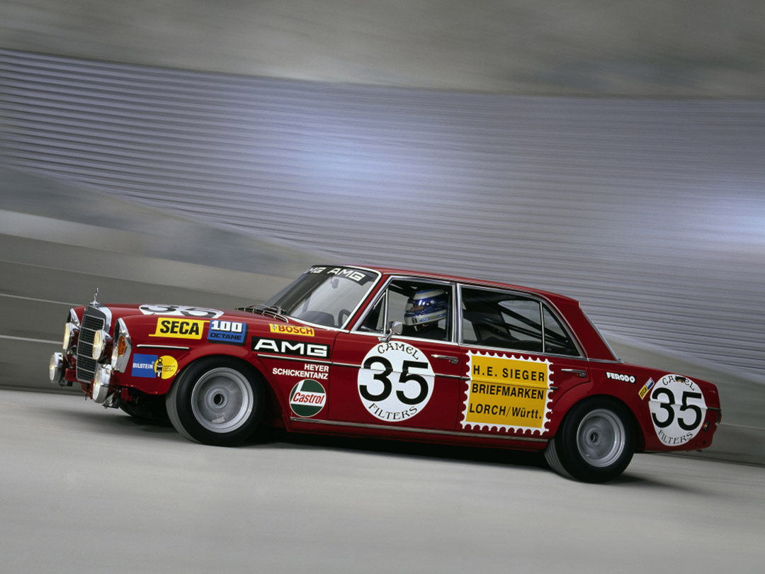 上世纪60年代末,AMG公司的两位创始人:Hans Werner Aufrecht和Erhard Melcher购买了一台300SEL 6.3赛车并对其进行进一步的升级改造。在完成车身轻量化改造并换装升级版的6.8L M100 V8引擎以及全新设计的5前速手动变速箱后。两位AMG创始人打造了首台奔驰AMG赛车:300SEL 6.8。