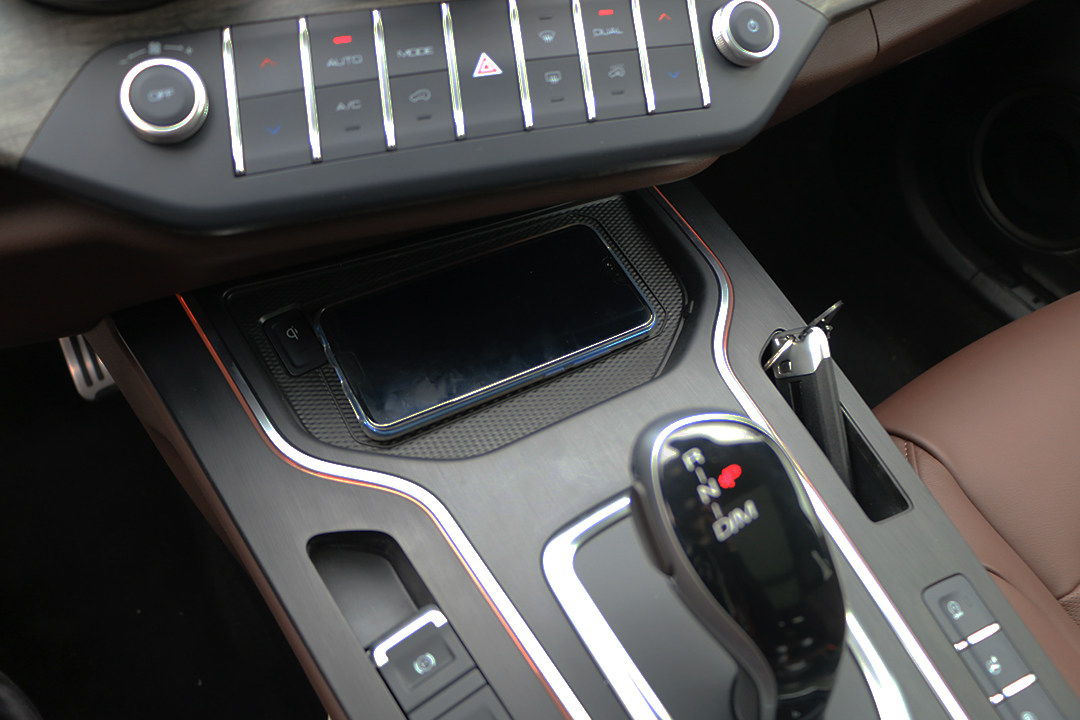 中控台底部增加了手机无线充电功能,此举也解决了部分用户吐槽的手机无处安放的窘境。中控底部采用了镂空的设计,设有两个USB接口,手机充电比较方便。中控扶手箱容积也变得更加大,且支持前后移动,贴心实用。