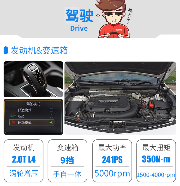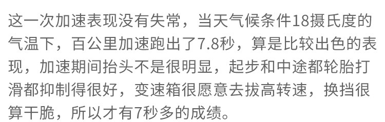 9AT变速箱配合2.0T发动机,动力输出很有爆发力,一点肉的感觉都没有,变速箱很积极地去拔升转速,低速到高速的推背力都是比较足的,换挡速度其实是还行的,个人觉得不算慢,只是做不到像马自达那样快,但也没有什么拖沓,只是拨片有点像是摆设,参与度和反应速度不够快,偶尔玩玩还行。