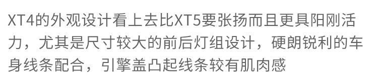 动力输出像是个灵活的小胖子,单纯整辆车的驾驶体验其实是偏舒适的,路过连续的凹凸路面或者较大落差的地方,悬挂撑不住笨重的车身,稍微有点晃晃悠悠开船的感觉,这跟阳刚活力的外观不太像,准确来说XT4是典型的美系车调校,是舒服的那种,如果是顶配的电子带可变悬挂可能会更好。