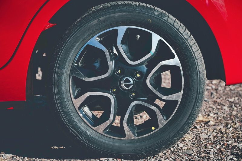 易至EV3的轮毂采用了双色花瓣设计,风格与车身一致,15寸的直径在EV3上足够显大。