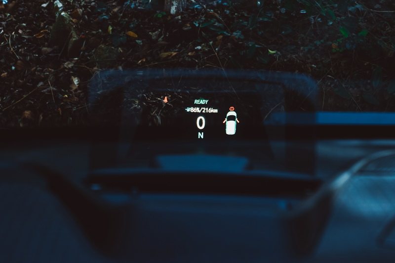 没错,易至EV3上的平头方向盘就是为了这块HUD抬头显示做铺垫。这块HUD上可以显示电量、时速、续航里程还有简单的导航信息。这是教授第一次见到在微型车上有HUD抬头显示。