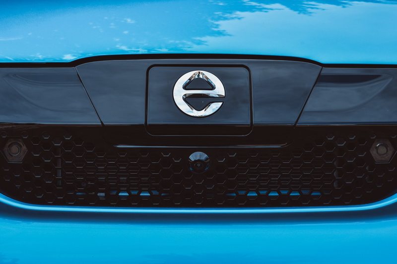 在易至EV3车头的E字下,是易至EV3的快充口,通过按压就可以弹起。通过快充口,车主可以用40分钟将易至EV3从百分之三十的电量充到百分之八十。