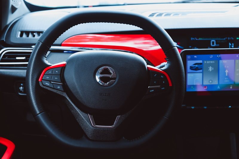 一般的方向盘是“平底”方向盘,而易至EV3上这个方向盘我们不妨称之为“平头”方向盘。易至EV3这个设计是有自己独特的想法。