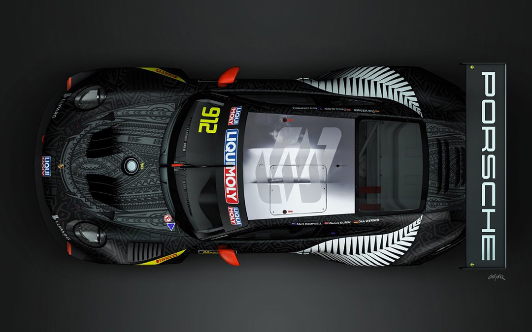 全新的车队,意外着全新的赛车涂装。本次发布会上保时捷亚太赛车运动还一并公布了本次参赛的911号和912号赛车的全新涂装。在黑色的车身上,银白色的羽毛拉花和毛利人刺青图案显得相当酷炫,同时又具有非常显著的新西兰风味,这个炫酷涂装的诞生显然离不开作为新西兰人的Earl Bamber的功劳。