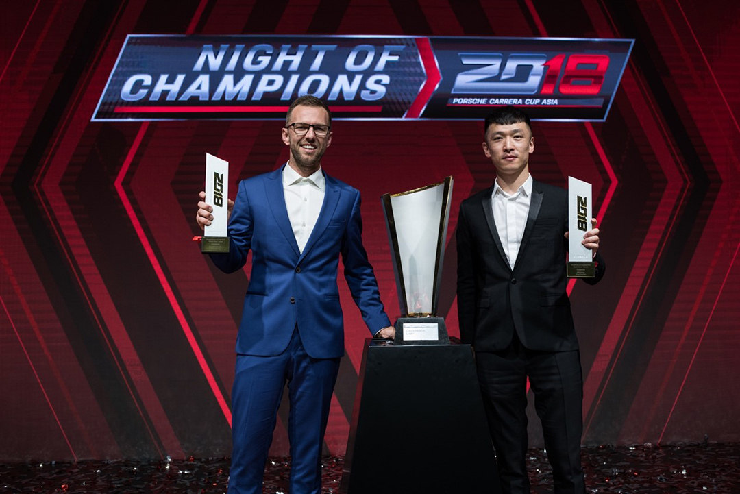 范德瑞(左)与包金龙(右)分别夺得2018赛季亚洲保时捷卡雷拉杯总冠军与绅士组总冠军。