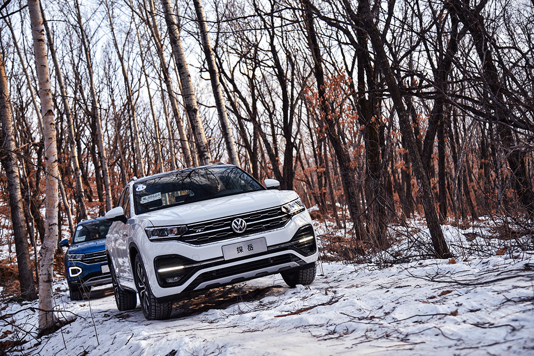 驾驶着大众探岳穿越银装素裹的林海雪原,稍有起伏的路面与部分非铺装路面给我们带来了轻度越野体验,这对于大众探岳来说就是小菜一碟。