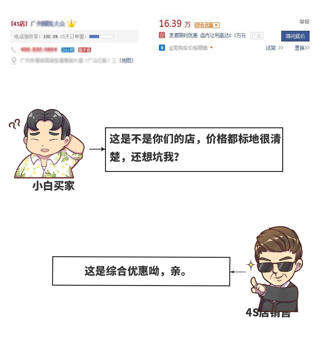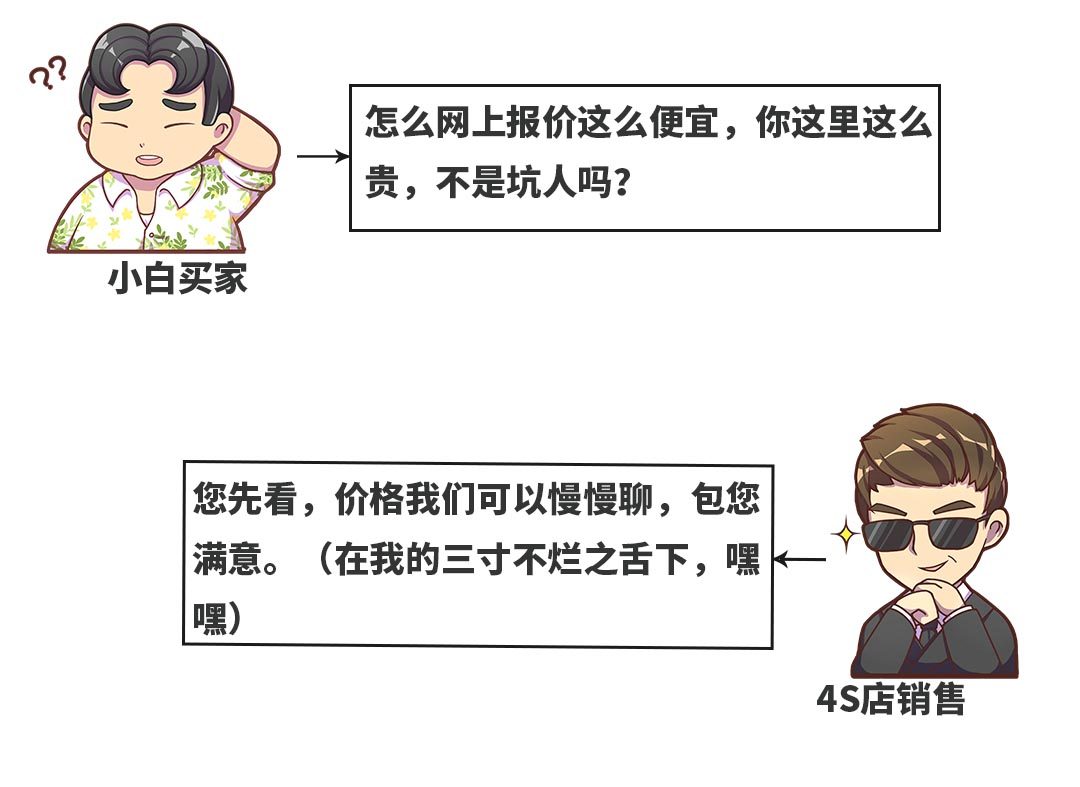 看中了一款车,看了网上的报价,开开心心想要去4S店提车。然后被销售告知不是这个价,受到了成吨的伤害有没有。来都来了,跟无良的4S店销售杀价呗,然后在销售的精彩讲解下花了钱买车。相信大家都知道了,所谓的网上报价只不过是4S店吸客的一种手段。