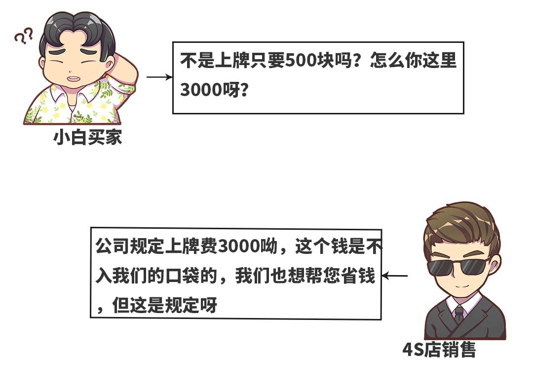 一般车管所上牌总费用不会超过300元,不想自己弄交给黄牛搞的费用不会超过500元。一些4S店3000元的上牌费用确实离谱。网上购车费默认的上牌金额0元,所以这里的误差加起来就超过4000元了。