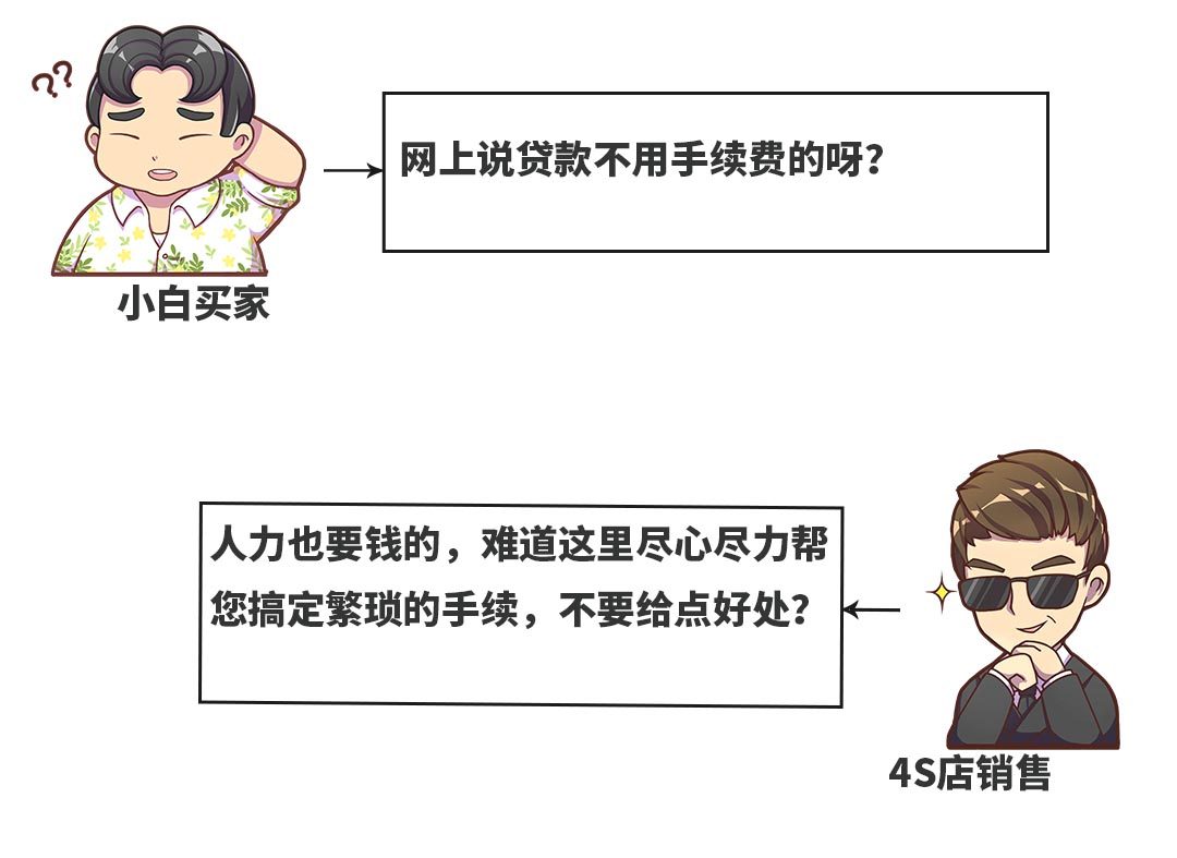 假如车主需要贷款,在这里也会产生分歧,部分汽车品牌是有自己独立的金融公司,优点就是手续简单、速度比银行快很多,但是跟银行的贷款利率不同。办理汽车贷款,行规都是需要收取一定的“手续费”!而网上的购车计算器并没有算出来,这里一般也要3000元左右。整个误差加起来已经差不多有1万了,其中还不包括你要加装的精品费,所以这个购车花费应该超过19.5万,而不是原来网上计算的18.51万。怪不得这么多人大呼4S店好坑。