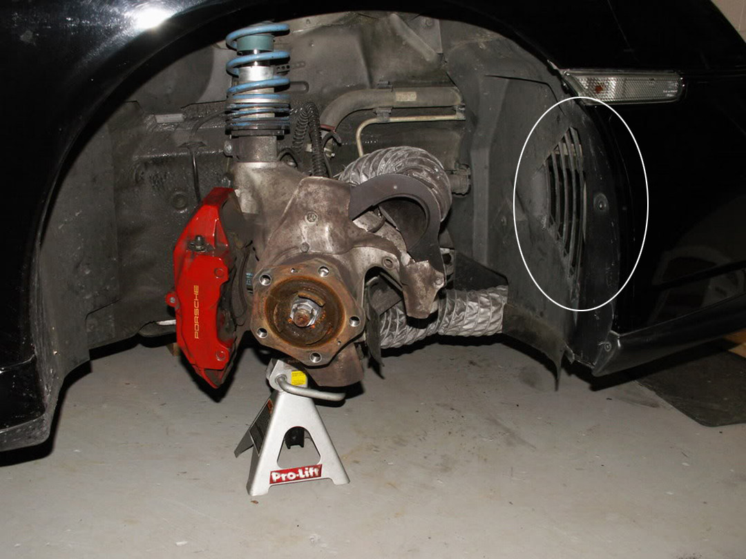 3、高性能车讲求制动效果,但强大的制动力会产生更多的热量,这些热量反过来会很容易让刹车失效。因此也需要利用冷却导风管帮助刹车系统散热。