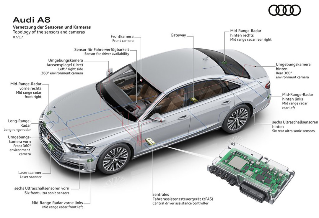 此外,据说奥迪A8L已经可以实现60Km/h的定速驾驶,只不过由于国内政策法律法规的原因,国内市场尚无法引进这项配置,有些可惜。