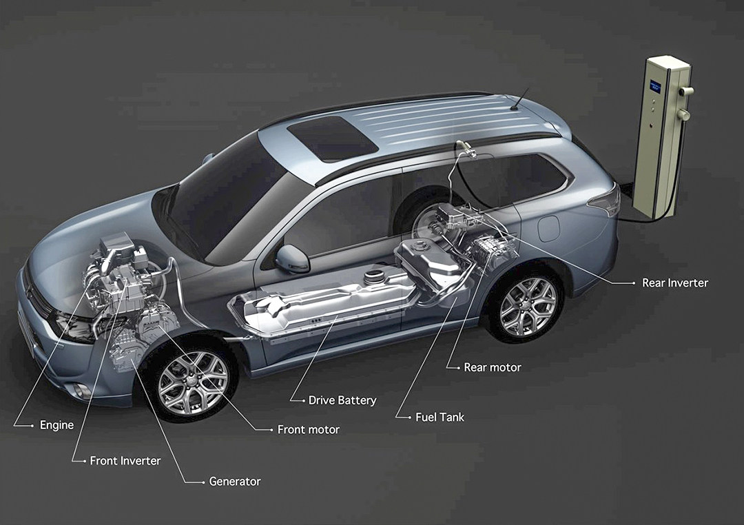 PHEV(Plug in Hybrid Electric Vehicle,插电式混合动力汽车)指通过插电进行充电的混合动力汽车,充电一般需专用供电桩,当电能充足时采用电机驱动车辆(一般为50-80km),当电能不足时发动机就会参与至驱动车辆和发电环节。