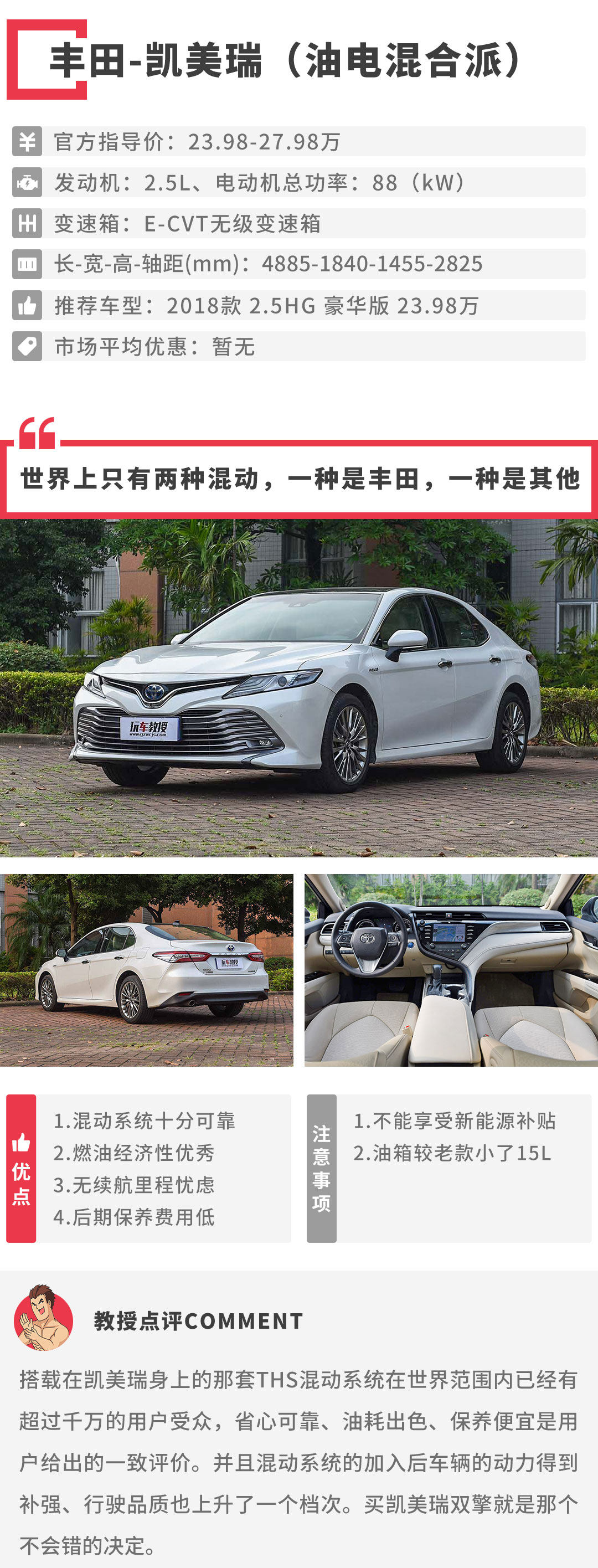 而混合动力主要分为两大阵营,一类是以凯美瑞、雅阁为首的油电混合派,一类是以比亚迪为代表的插电混合派。恰逢国内成品油价格在19年迎来了两连涨。借此教授就分别从这两拨阵营中各挑选两款燃油经济性出色的车型供大家参考。