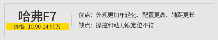 你可以将哈弗F7理解为哈弗H6的年轻版。按照官方定位,哈弗F7应该是一台更加运动的车型,但是实际开起来跟H6很像。所以这是一台轴距更长、外观更运动的H6。而且在同价位下,哈弗F7的配置略微比哈弗H6多一点点。