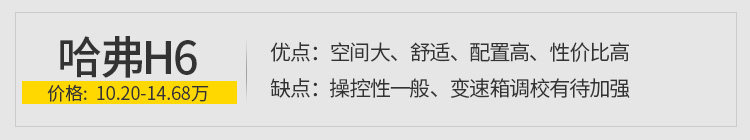 国民神车,优点是空间大、驾乘舒适、配置高、性价比高。缺点是操控性能一般,变速箱的逻辑还有待优化。哈弗H6还有个需要注意的地方,18款H6的1.5T发动机不仅动力弱,而且变速箱换挡和起步都比较粗糙,如果购买的话,选择19款H6。