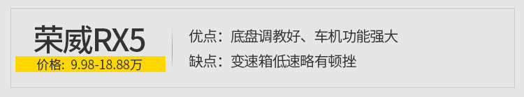 国产SUV的另一代表,优点是乘坐空间大、舒适、斑马OS车机功能强大、动力和底盘调教比哈弗H6略胜一筹,但是低速依然略有顿挫。同价位上网荣威RX5配置比哈弗H6略少,对配置要求较高的人群会更倾向哈弗H6。