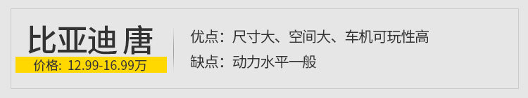 唐绝对算一款同价位下越级的产品,燃油版的唐售价为12.99-16.99万,跟国产紧凑型SUV价位部分重叠,而唐属于中型SUV,车身长度达到了4870mm,明显要比以上几款紧凑型SUV大一圈。比亚迪玩了这么多年混合动力,发动机有点落下了,比不过同规格的产品。看在价格的份儿上,我当然选择原谅了。