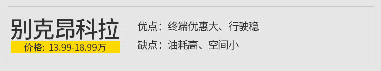 昂科拉的视觉看上去重心非常高,给人不稳定的感觉。但行驶起来其实非常稳。其空间比缤智小一些,在小型SUV这个级别中,一寸长一寸强,大一点和小一点的空间会造成销量上的巨大差距。昂科拉采用的是1.4T涡轮增压发动机,油耗相对高一些。终端优惠大也是昂科拉的一个优点。