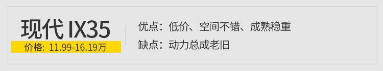 合资、低价、空间不错是现代ix35热卖的法宝。而且在低价产品中,ix35是少有的设计风格偏向稳重的产品,中年人士应该会喜欢这种风格。2.0L+6AT的动力总成是上一代的产物,虽然比不上新一代的产品水平,不过胜在成本低。