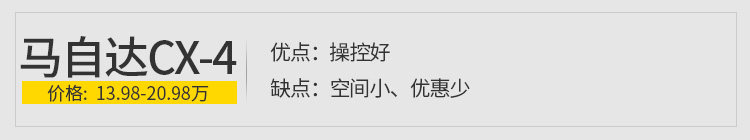 2018款加入GVC系统后,操控性能变得更好了。轮毂17寸起步,19寸封顶同级罕见。空间小是马自达一贯的毛病,而且CX-4没有什么优惠,性价比不算高。