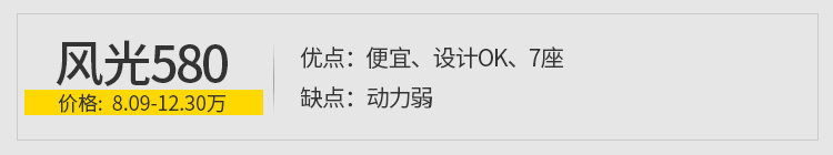 风光580虽然曝光度不高,不过销量还能维持在月均1万左右的数量。在教授印象中,风光580应该是第一款10万以下的7座SUV。在这个价位里,外观和内饰能做到盘正条顺就不错了,风光580的乘坐空间水平也过得去。至于机械部分的我说好你也不信,对吧。