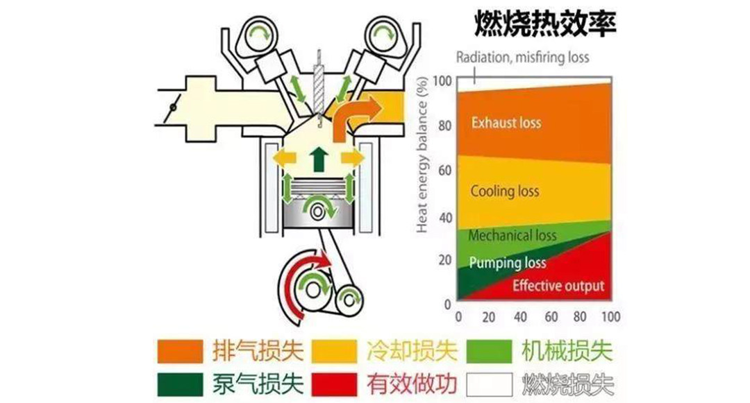 一般要提升发动机的热效率,除了增加燃油的燃烧能量,提升能量转化为机械能(推动活塞)的效率以外,还可以降低热量散失、降低内部摩擦、降低泵气能量损失等方式来提升。