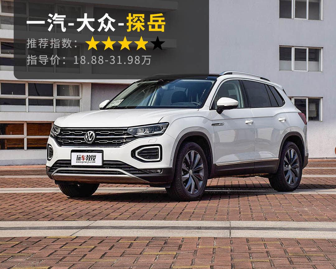 推荐理由:探岳与途观L的关系,是队友也是对手。在生产关系上,两者都是大众MQB A2平台的产物,这也就是为什么探岳也是中型SUV。探岳,大众新生时代的代表车型,并且也是一汽-大众的第二款SUV车型,理所当然的用上了大众最新的技术。当然,也局限在这个价位的主流技术,外观、内饰等。比如,全新的大众家族设计理念,年轻时尚化是最明显的;而内饰也是熟悉的味道,但向驾驶员倾斜的内饰布局及一些细节变化格外有新鲜感。安全系统及更好用的车机系统,这都是探岳作为新生代的优势所在。讨巧的定位,使得探岳踏上更高的车型领域。而在教授的实测成绩中,搭载2.0T高功率发动机的版本,其百公里加速的实测成绩为7.0s。