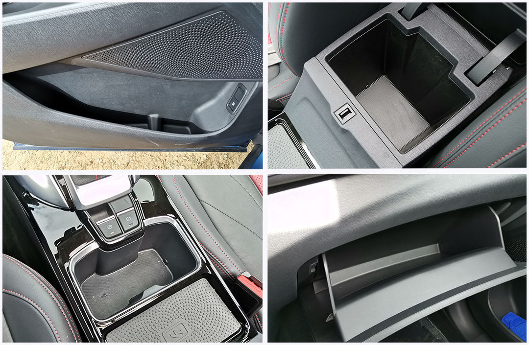 储物空间方面,前排各个地方都能轻松找到放置身上小物件的地方,储物空间分布还是挺多的,只不过储物空间的大小中规中矩。