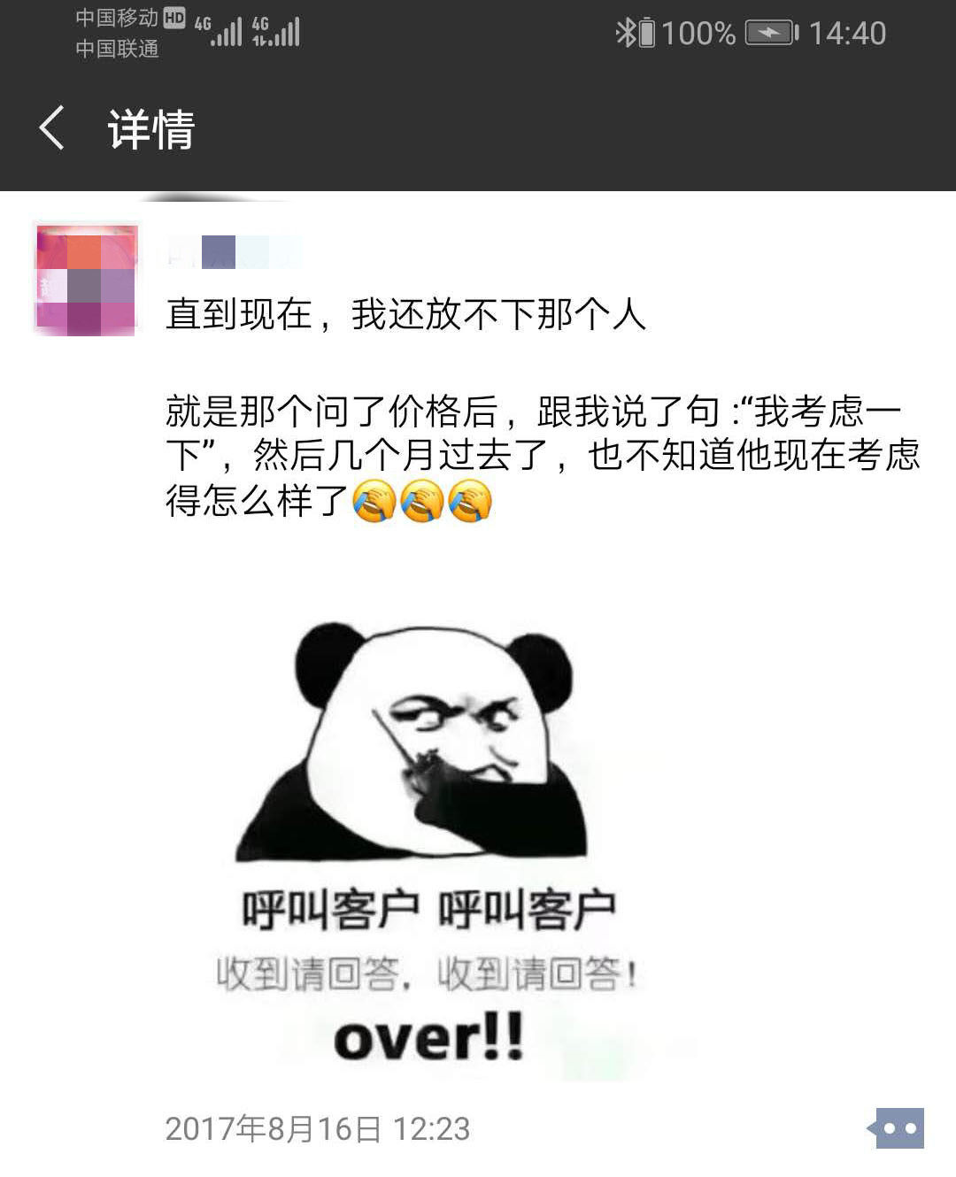 所以这个时候大部分人还是会说,我先回家考虑一下。这句话是教授在做销售的时候在客人离开店前听过最多的一句话,我相信很多的汽车销售也是感同身受的,然后很多客人在留下这句话后就仿佛就从人间蒸发了一样。