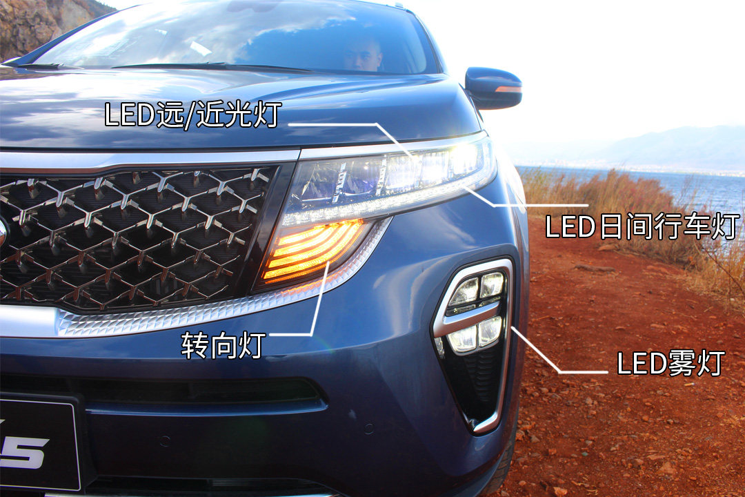 新款KX5为了提高竞争力,全系标配了LED大灯和LED雾灯,其中转向灯的日间行车灯都采用了灯带的设计,精致感那是相当突出的!