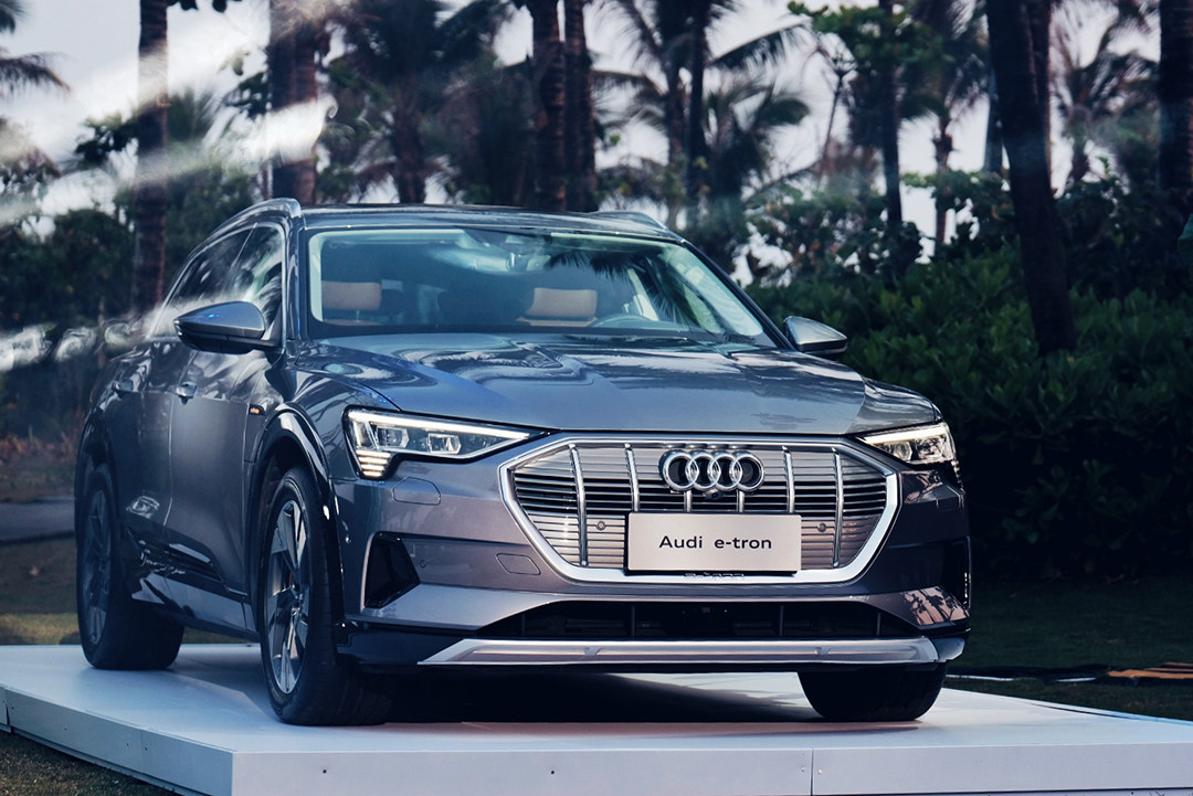 在三亚站E部落的奥迪展厅,奥迪不仅展示了全新的e-tron FE05赛车以及e-tron Vision GT概念赛车之外,更对其即将在国内发售的量产版本e-tron纯电动SUV进行了展示。