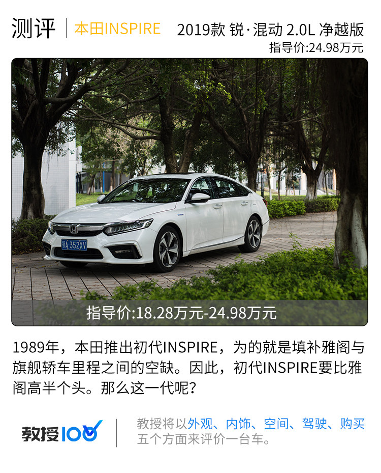 总结:回到开头那个问题,INSPIRE和雅阁哪个更好?排除政策等因素,教授认为是INSPIRE更好的,INSPIRE的售价便宜1万,配置却多了不少。重点是可调悬挂。这一代雅阁的悬挂非常硬,如果有可调悬挂可以满足更广泛人群的需求。所以,在总得分上,INSPIRE混动的得分要比雅阁混动得分略微高一点。