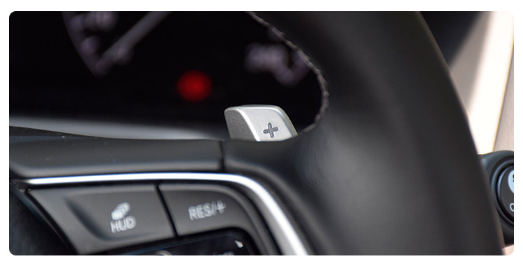 在INSPIRE上,还有一个换挡拨片一样的东西。这东西其实是动能回收调节拨片,总共有四级可调,使用换挡拨片可以进一步降低油耗,提升续航。