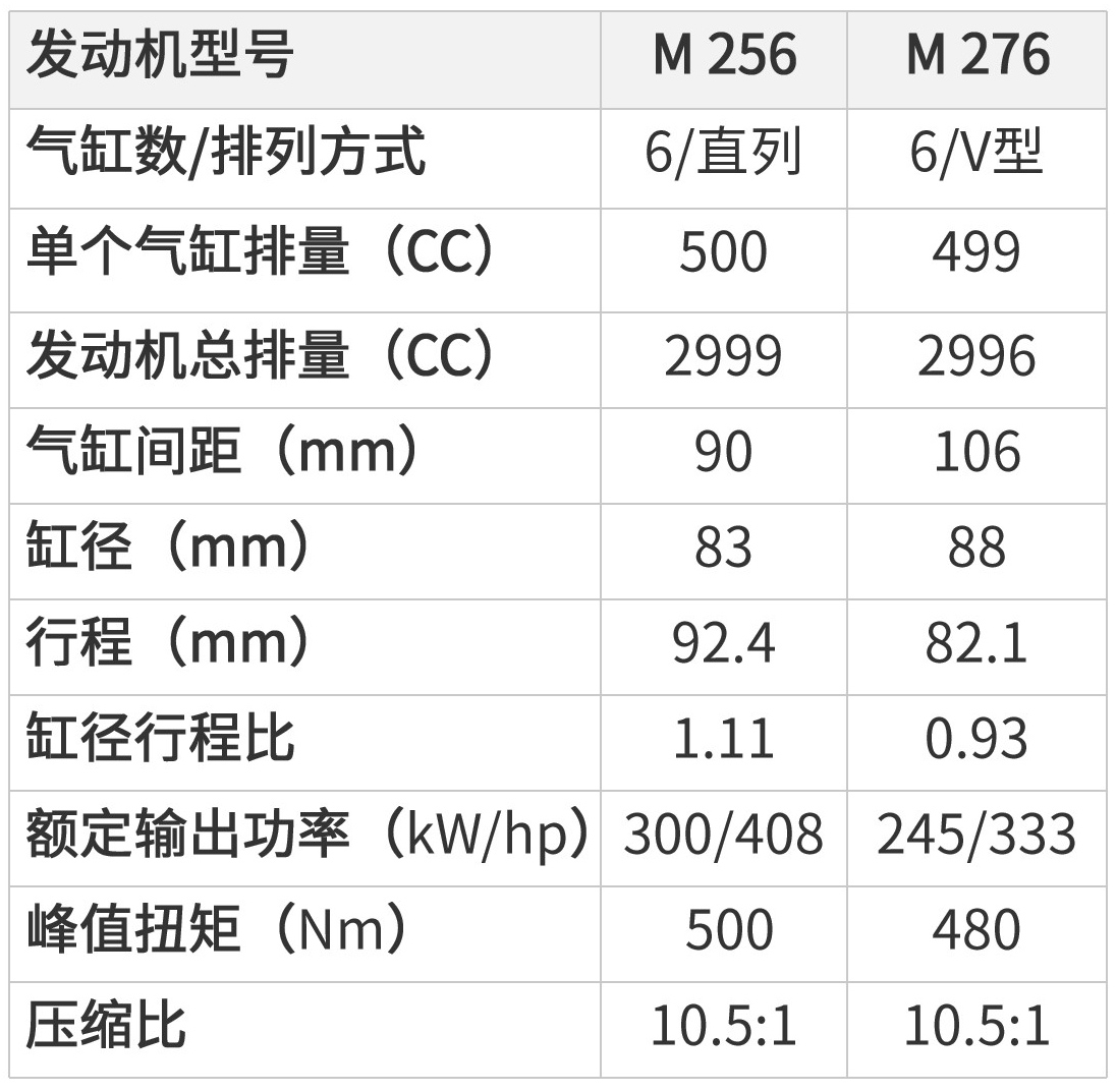 最后聊聊这款发动机的动力,最大功率300千瓦,最大扭矩500牛·米,升功率100千瓦已经属于优秀行列。相比老的M276 V6发动机,新的M256 L6发动机是典型的长行程设计。
