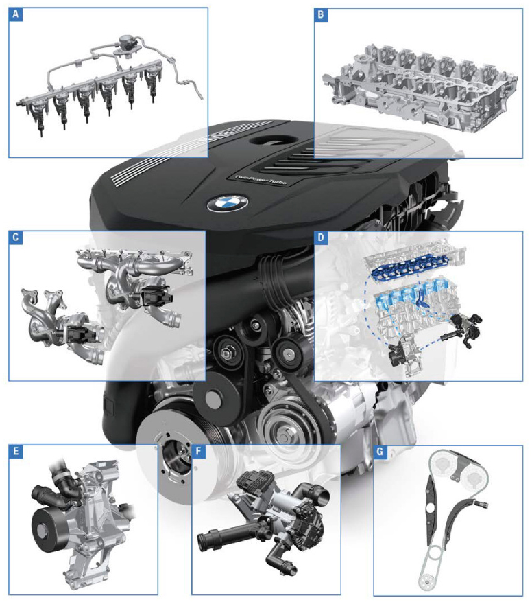 模块化设计的特点是减少了发动机零部件数量,以B58TU为例,它取消了气缸套,排气歧管与涡轮采用了一体化设计。另外B58TU也采用了汽缸盖集成排气歧管的设计,这种方案对发动机的油耗以及排放有一定帮助。