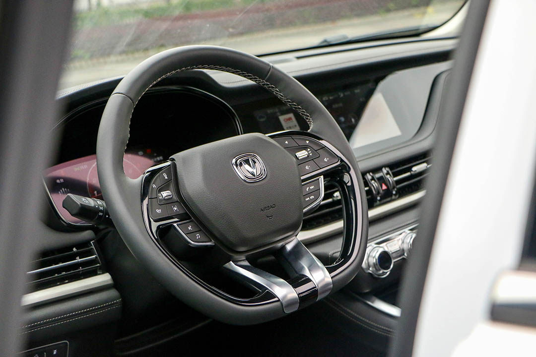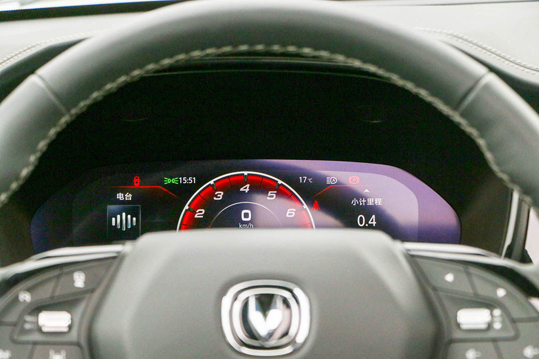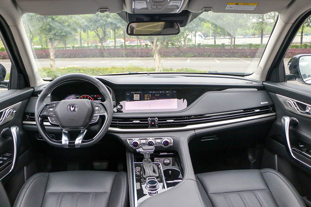 12.3英寸全液晶仪表盘和10.25英寸中控显示屏,很好的形成了两屏联动的效果。连贯式出风口及三幅式方向盘,整体精致了不少。相比于外表观感的优化,长安CS95在功能配置上花费了更多的功夫。