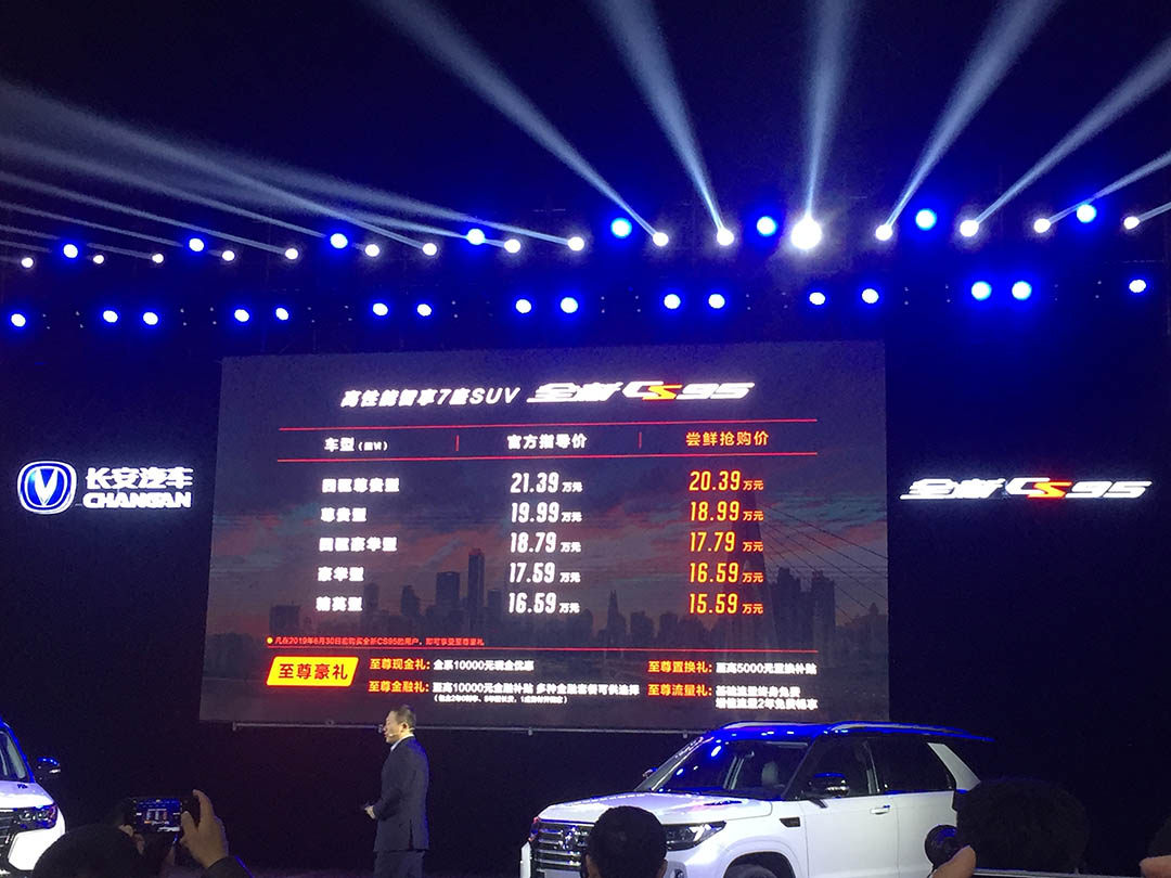但此时,长安CS95正以一种全新面貌出现,力争自主品牌之上游。4月2日,长安CS95正式上市,售价16.59-21.39万元,共推出5款配置车型,并满足国六排放标准。在动力上,沿用2.0T蓝鲸发动机,其最大功率为171kW(233PS),峰值扭矩则为360N·m。而在传动方面,依然匹配了爱信的6速手自一体变速箱。值得一提的是,长安汽车还推出一系列的惠民政策,比如现金优惠1万的抢先价等等。
