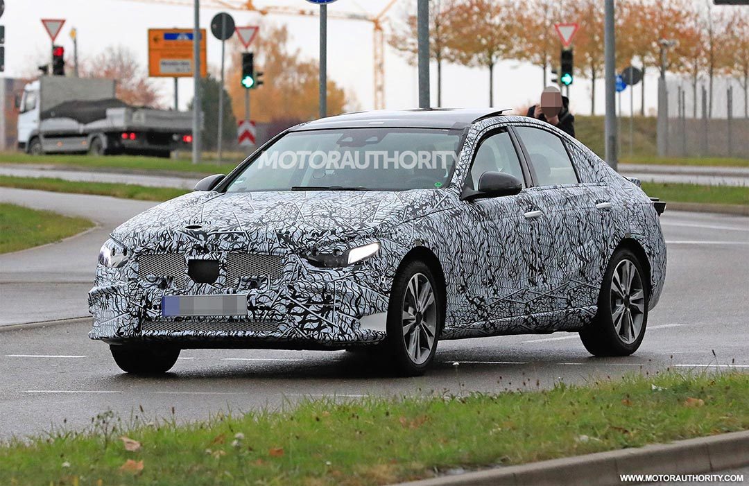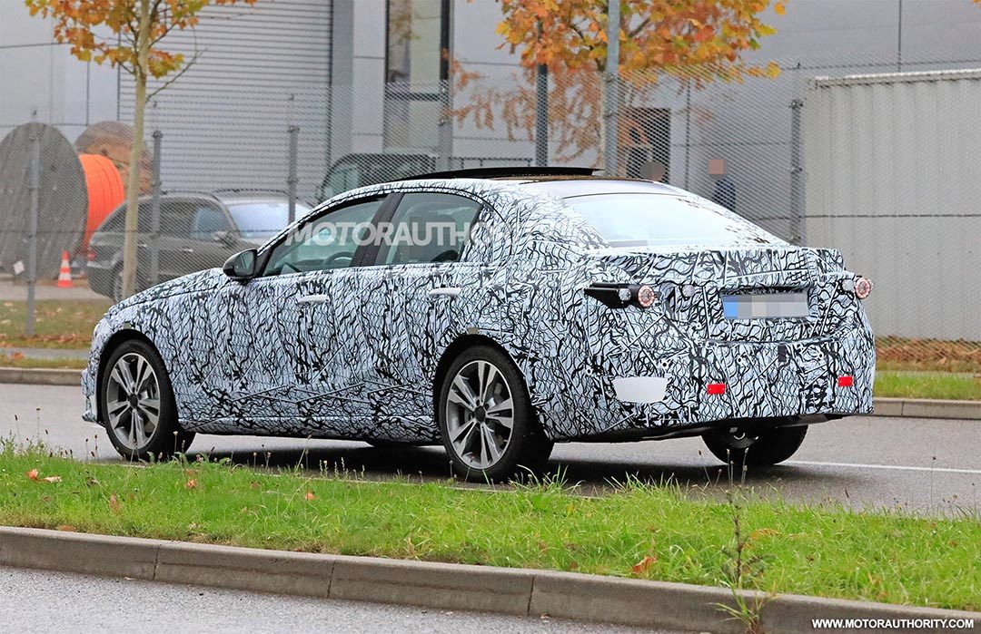近日,海外媒体拍摄到全新奔驰C级伪装车路试谍照。尽管新车被密封纸包裹得非常严密,不过还是可以看出不同。前脸部分更换为网状前格栅,经典的横条幅镀铬装饰条被取消,前后大灯组的造型作出调整,尾灯换为圆形光源。车身造型以及轮毂等还是延续了现款奔驰的设计。新车基于MRA后轮驱动平台打造,其内饰采用与奔驰A级相类似的家族设计风格,加入MBUX系统是必然的事情。动力方面,除传统的2.0T汽(柴)油版外,还可能新增2.0T PHEV版本。路试车距离实际量产估计有不少差距,但总体外观基本确定,更多有关奔驰C级的消息我们将会持续报道。(motorauthority)